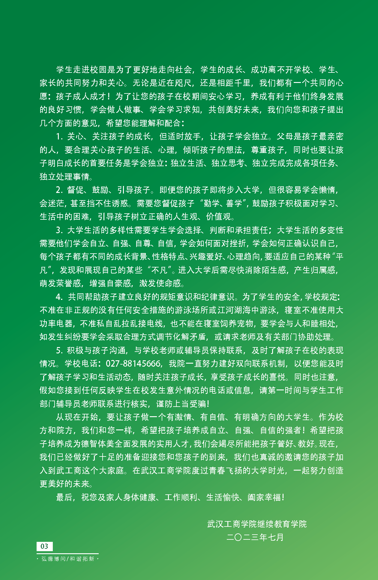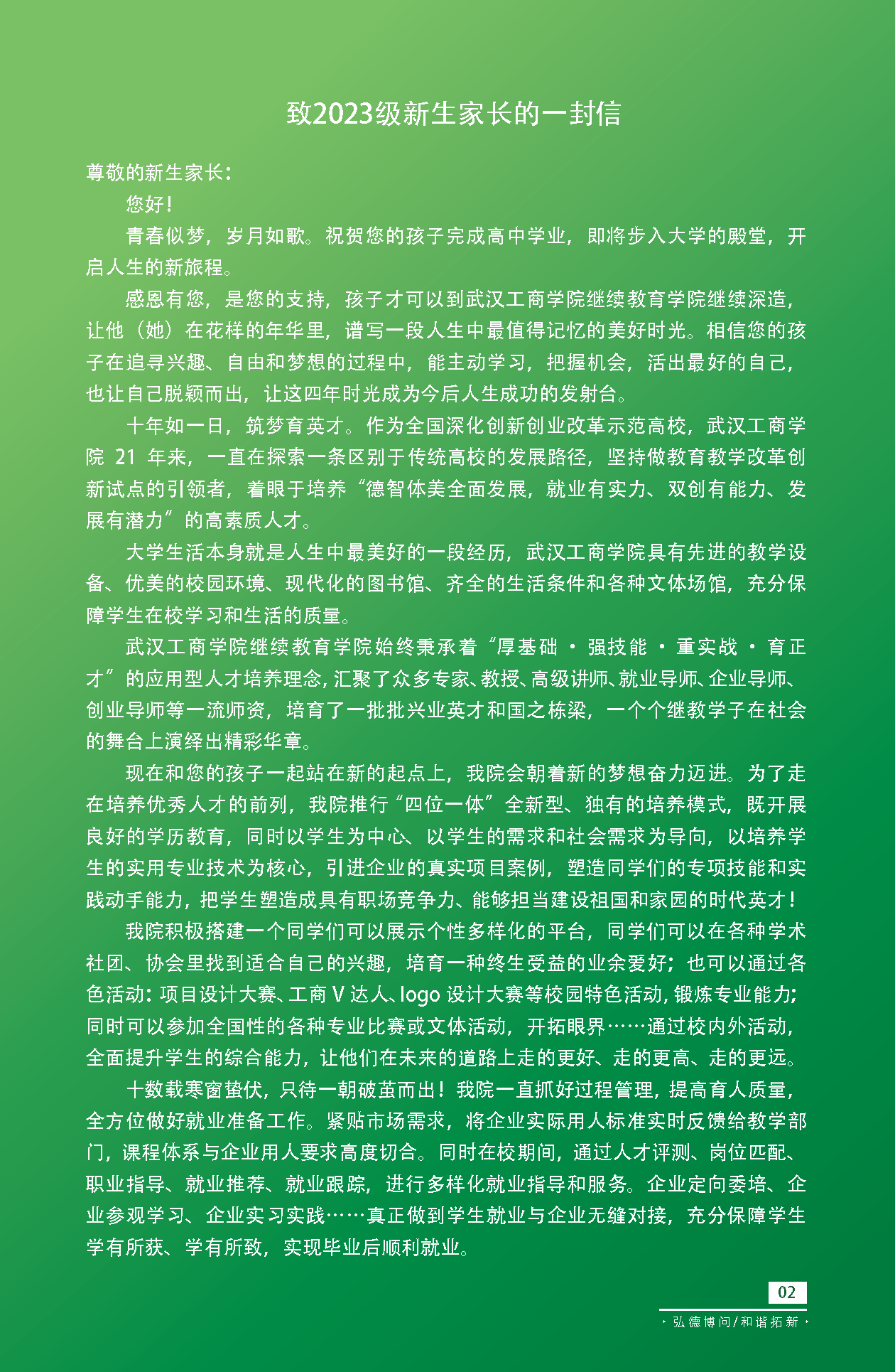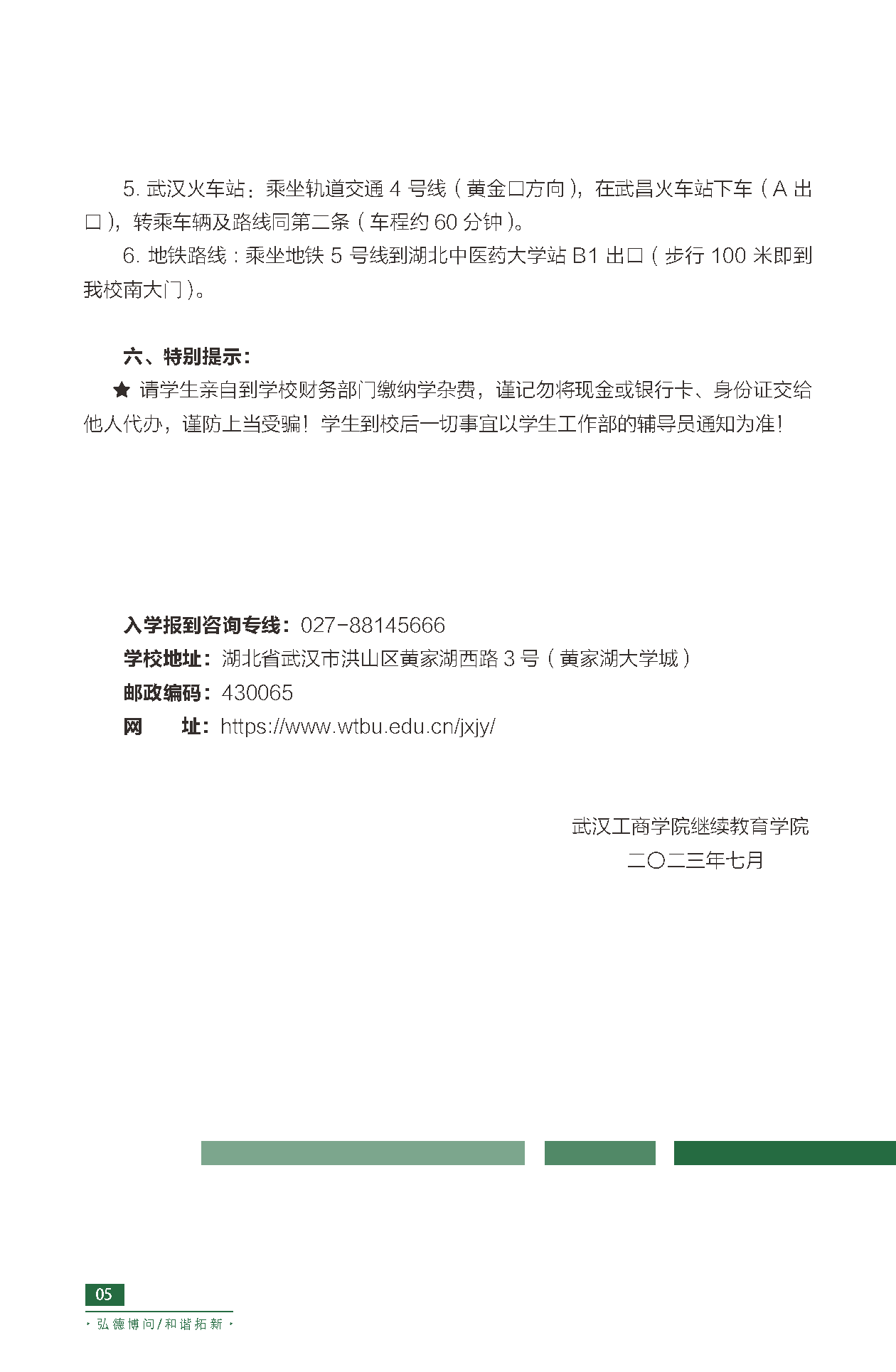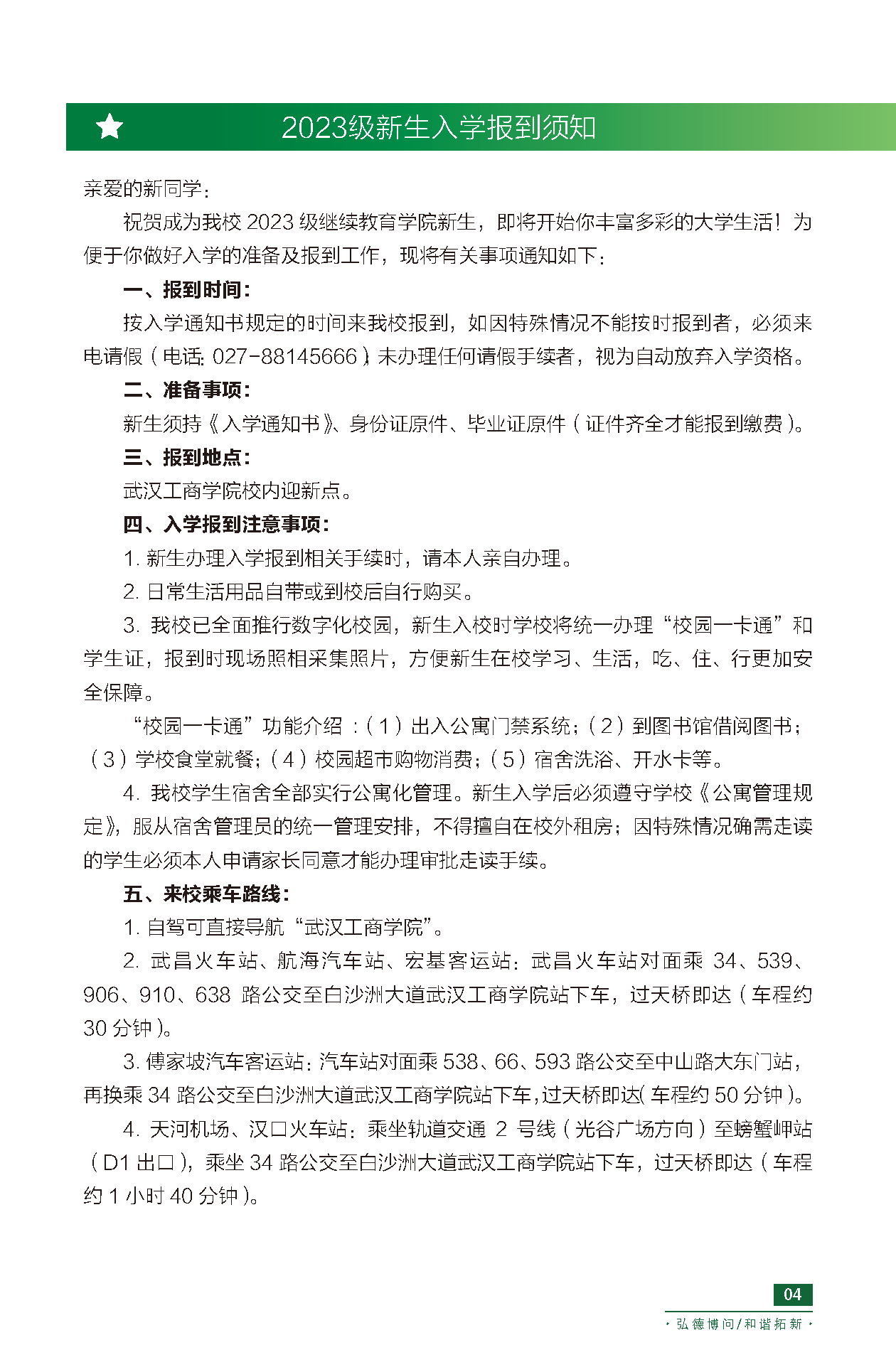 2023武汉工商学院全日制本科助学班(应用技术型人才培养班)入学报道手册